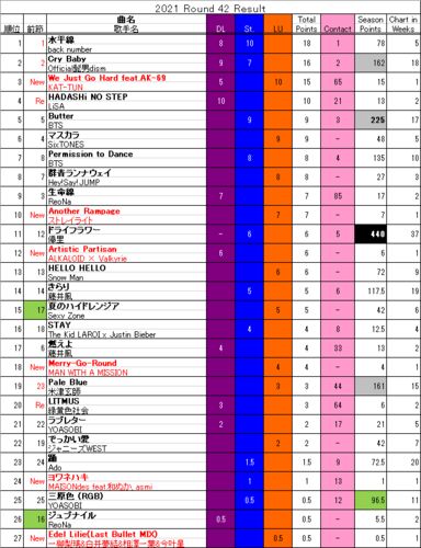 2021シーズン第42節(9月6日~9月12日)結果 昨シーズンとなる2020年度から大幅に仕様変更を行ったGreen Hill Music Chartですが、今季は新たに長期に渡りチャートインしている曲に対してポイント獲得条件を付け、チャートの活性化を促進する「リカレント…