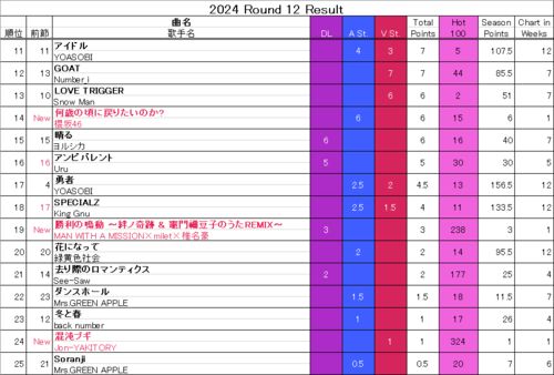 2024シーズン第12節(2月12日~2月18日)結果 このチャートで用いているBillboard Japanのダウンロード、オーディオストリーミング、ビデオストリーミングの要素を含め、Billboard Japan全体の仕様解説も掲載しておりますので、併せてご覧いただければと思…